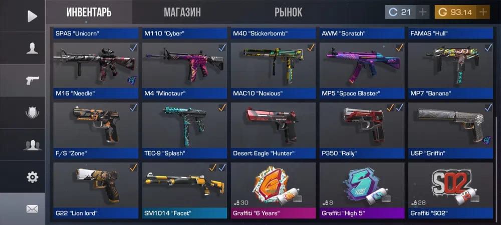 - скины для оружия,